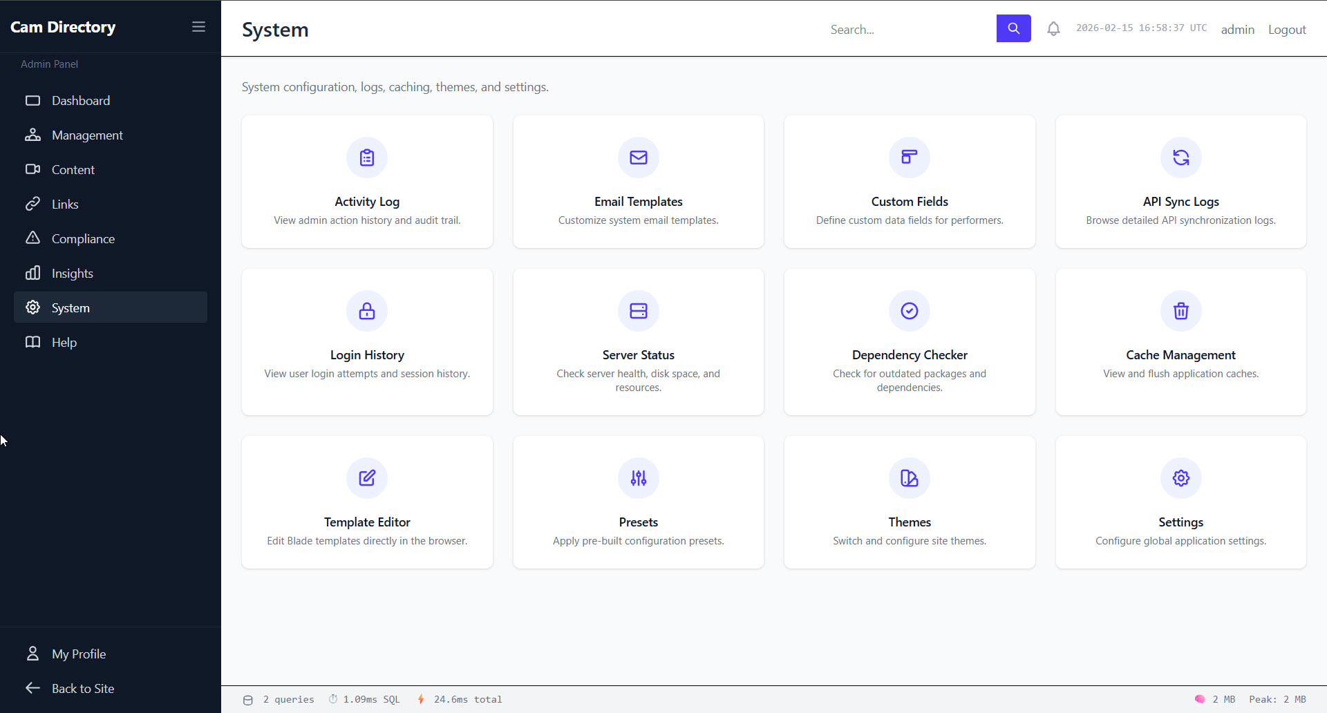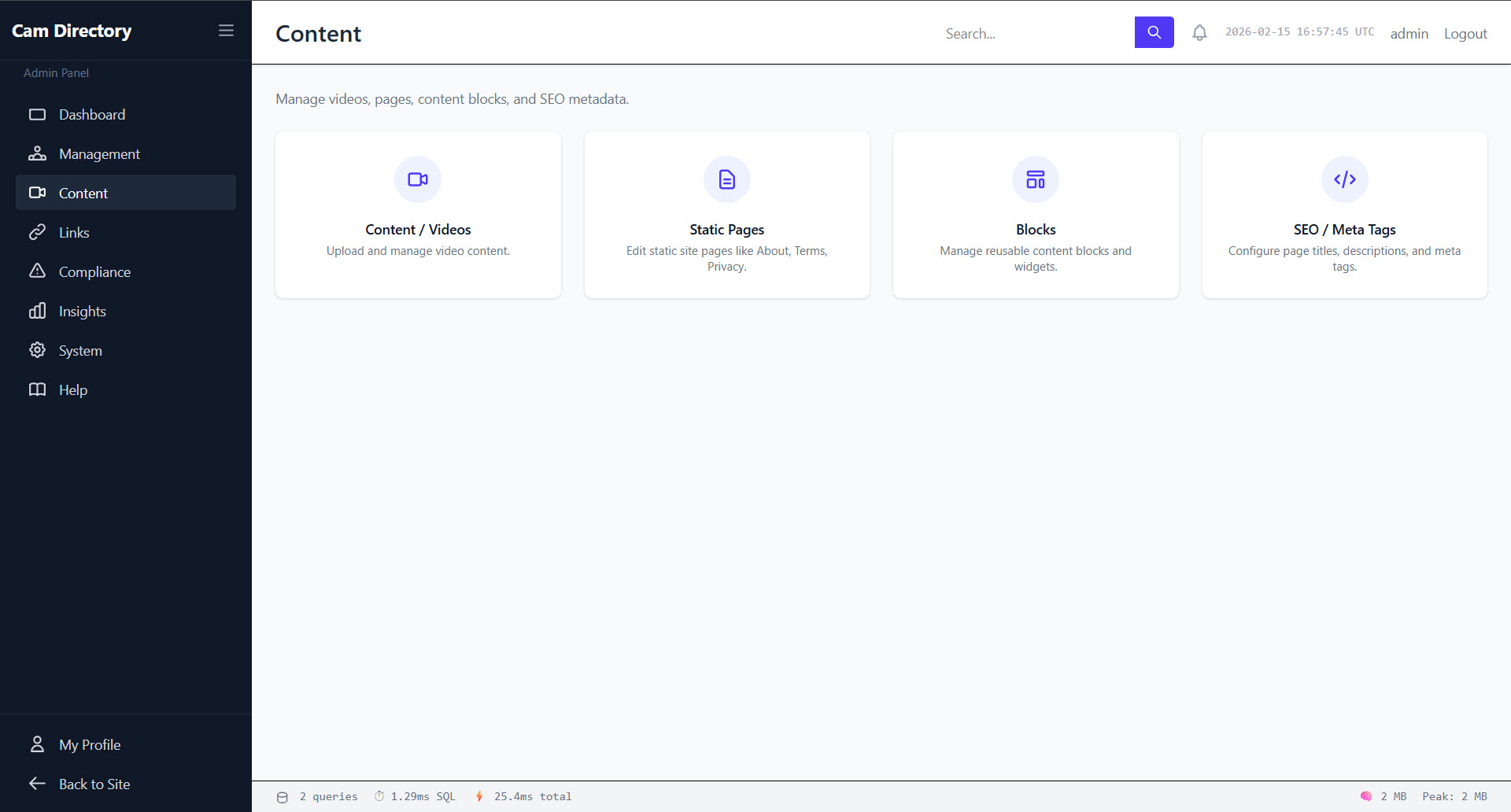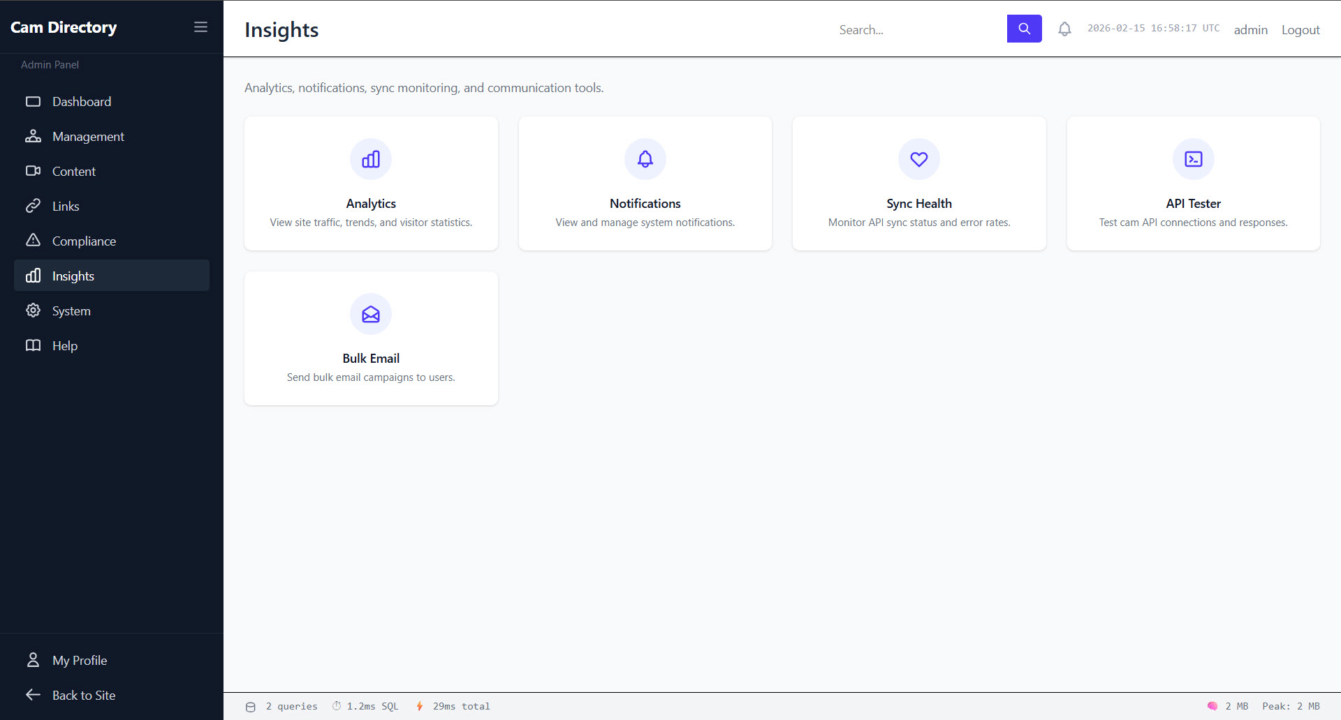 Launch your Cam Directory