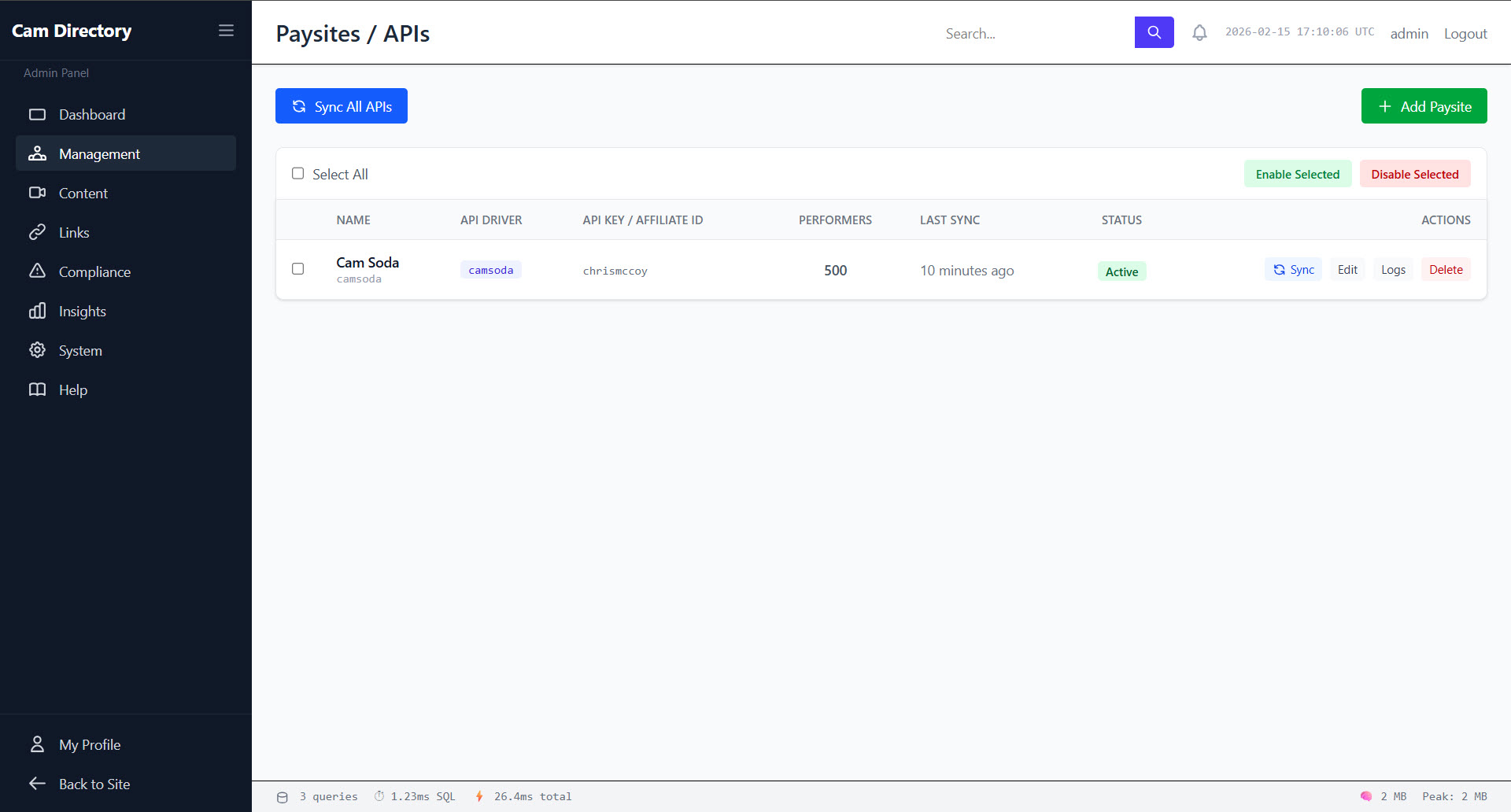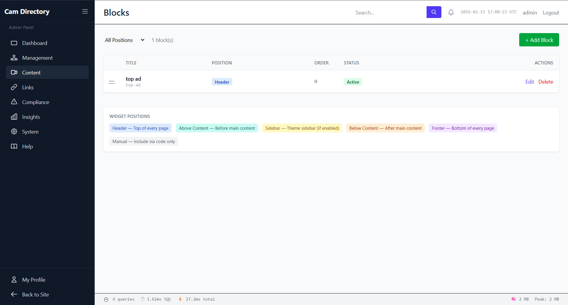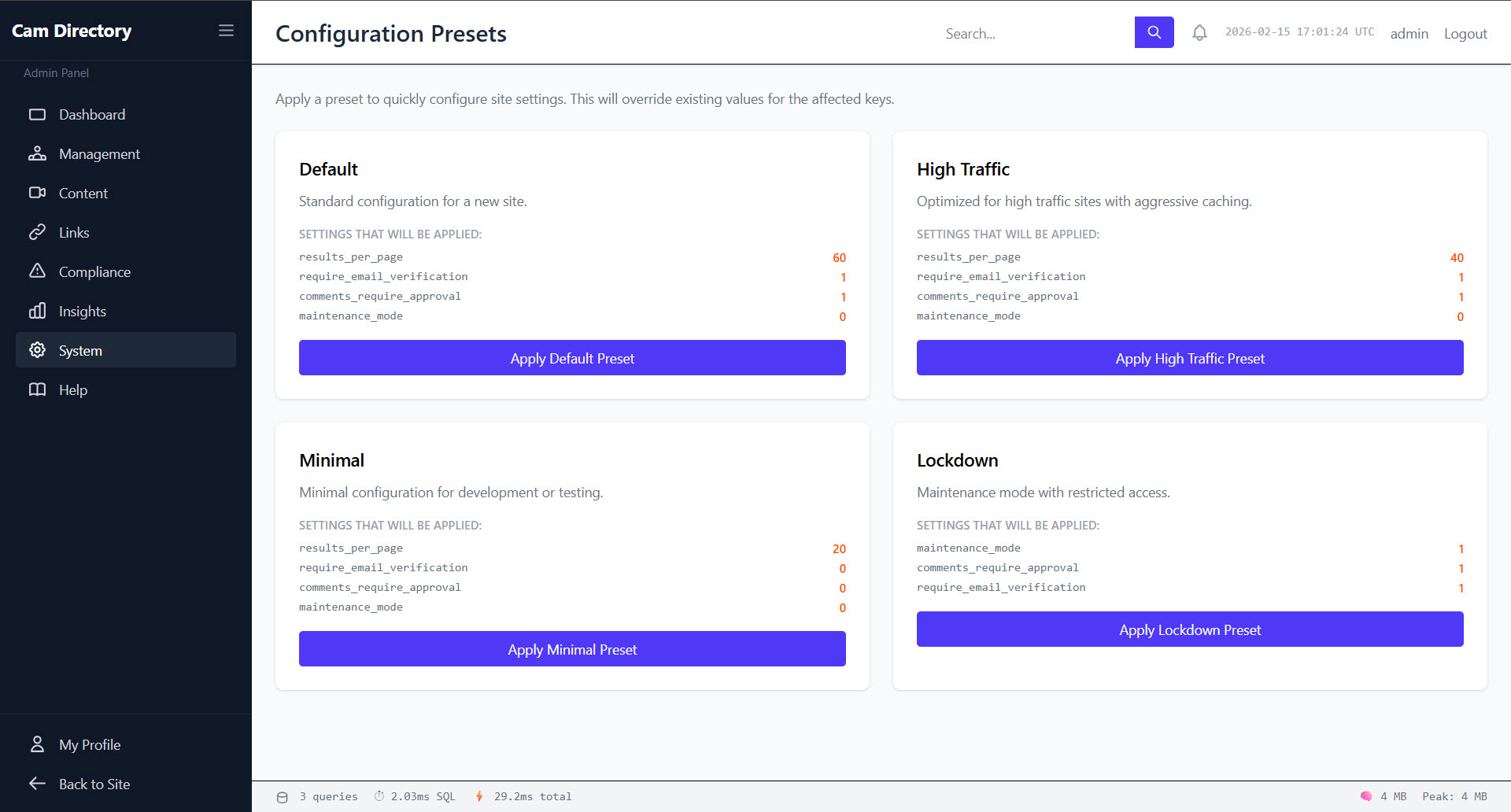 Launch your Cam Directory