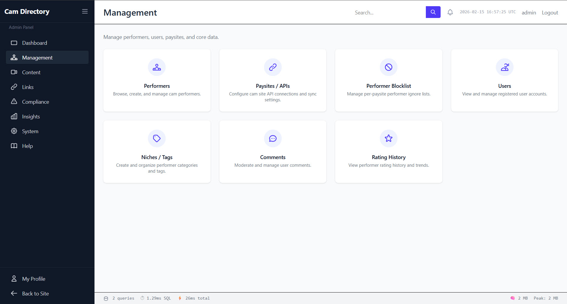 Here you will find the screenshots for the modern Laravel Cam Directory platform